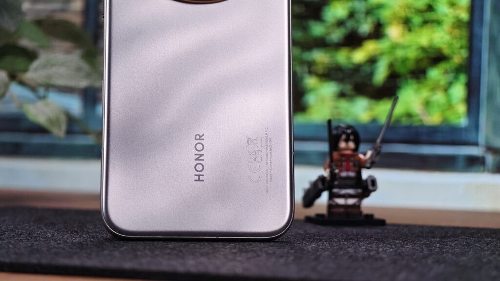 Teksturowany pierścień wokół wyspy aparatów czy fakt, że sama wyspa ma nieco graniasty, charakterystyczny dla flagowców tej marki kształt to miłe drobiazgi, które wraz z matową ramką ze szczotkowanego aluminium dyskretnie sygnalizują, że masz do czynienia ze sprzętem z półki „premium”. Plecy obudowy wyglądają bardzo dobrze i nie łapią odcisków palców, ale to jedno z tych miejsc, gdzie Honor dokonał… ciekawego wyboru.