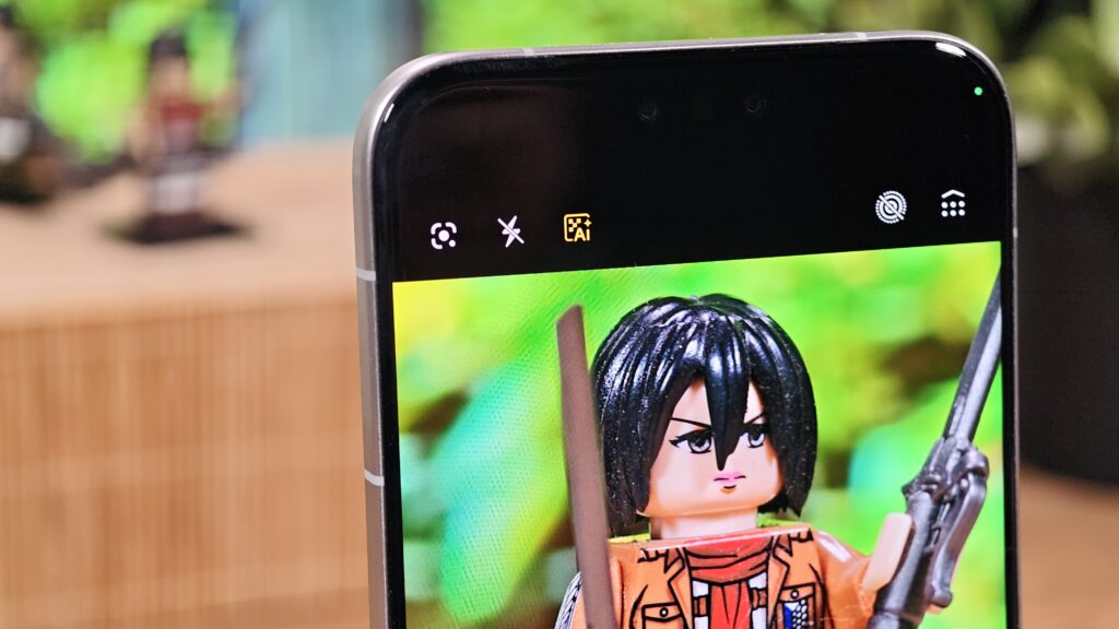 I tu ciekawostka: aparat ma wspomaganie AI, które wyostrza zdjęcia przy bardzo dużych powiększeniach. Nic nowego, ale posłuchajcie tego: funkcja pojawia się dopiero wtedy, kiedy użytkownik wybierze zoom powyżej x10, (wymaga jednorazowego włączenia), wyraźnie sygnalizuje, że jest aktywna a potem – co wspaniałe – daje możliwość cofnięcia modyfikacji, jakie AI dokonało na zdjęciu, albo zapisanie tego zmienionego zdjęcia jako kopii, z zostawieniem „czystego” oryginału!
